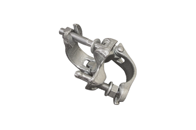 The swivel coupler allows scaffold tubes to be connected at varying angles, providing flexibility in complex structural configurations. Its rotating design enables angled connections without compromising strength or load-bearing capacity.